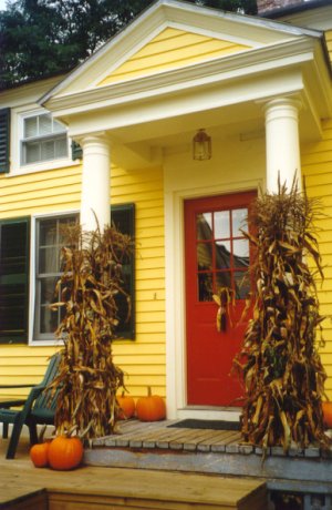 | October in Maine. Leaf-peeping is hard work; folks be tired after chasing the colors all day. They need a place to stay. So the innkeeper is a busy lady. Still she found some time to marthastewart the kitchen door.