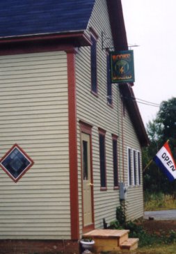 | Yesterday was a busy day in Unity. Patricia and Mary's Books and Bagels coffee house/bookstore opened quietly. They took an old eyesore of a building across the parking lot from the Homestead Restaurant and made it into a light and airy space where they showcase North Country Books. Melissa makes their soups and cookies. Upstairs they will have a few computers hooked to an ISDN line. Let's see: books, coffee, Melissa's chocolate chip cookies, the internet; I think all my needs are satisfied.