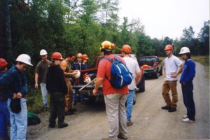 Yesterday was also an annual community work day; the college students and town residents work together on sprucing up the town. Melissa and I were on a team that cut a trail through the woods to connect an apartment building with town. We had to wear hard hats. In the woods the swamp maples have already turned red, but you know how it is with swamp girls; they're always ahead of their time. |