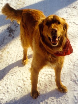 Cadi and I went for a long walk in the woods this morning over soggy ground and crusty snow patches. Near the end of the walk I wanted to test the lake ice. Cadi walked out over the ice in her usual way and fell through about 20 feet out. She had her front paws on the ice edge but had no idea how to get out. It took me a few minutes to talk her into going to the other side of the the hole where she could climb out more easily. While I was talking her out, a timer was running in my head set for about 4 minutes after which time I'd have to wade out and get her. Fortunately she figured it out in time. | |