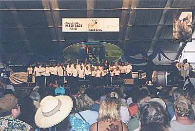 I'm not sure where this special effect came from, maybe a light leak in the camera maybe magic leaking into my brain, but this is the way JazzFest felt to me this year, a soulful infusion of warmth and music. I was glad to see that a capella jazz has made a small inroad in the gospel tent, but the best gospel tent moment was Michelle Shocked singing with a children's choir. We were sitting in the back, the tent was packed, and the sound was hysteria huge and pulsing the whole tent and all the people melted together.