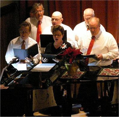 I stumbled across this Literary Map of Maine recently and thought that I could build some great summer tours based on it. We could go to a selected site each morning, then have lunch and shop all afternoon. I think my sisters would go for it. In the December Mix I aim for winter songs: the hush, the threat, the joy. The Sweet Honey in the Rock cut, We Are the Ones, expresses my feelings about the messiah aspect of the season. The Seattle Labor Chorus has one called O Little Town of New Orleans, but it was to sad to put on the mix. For the second December in a row, there's a song about death on the freeway. You have to balance out the joy thing. I really miss liner notes. On our first snowy day, Melissa sang in the community christmas concert. If corsages ever make a comeback we are ready. In what is now a tradition, I sat upstairs with Monica. Given the length of the program, she had ample space for her rewrite in the margins of "The Night Before Christmas" as a catering event ("the crockpots were laid by the chimney with care"). They ended with what could be the Unity town song. |