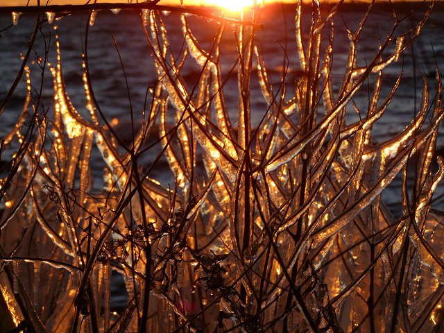 Last Sunday was icing day on the lake. I took this shot at sunset. We may get another icing day because we've had a big rain storm that washed everything away, knocked out power for 24 hours, and gave us a couple of inches of water in the basement. That was so avoidable; I should have put the generator on and plugged the sump pump into it before going to sleep. Dexter woke us up around 3 am, something about how am I supposed to use a floating cat box. I took the occasion to rip out the stinky carpet in the basement office/workout room.