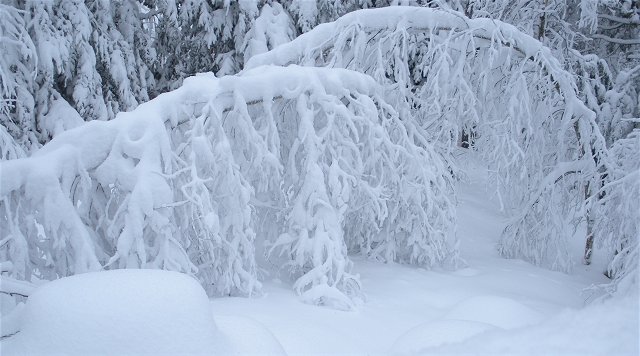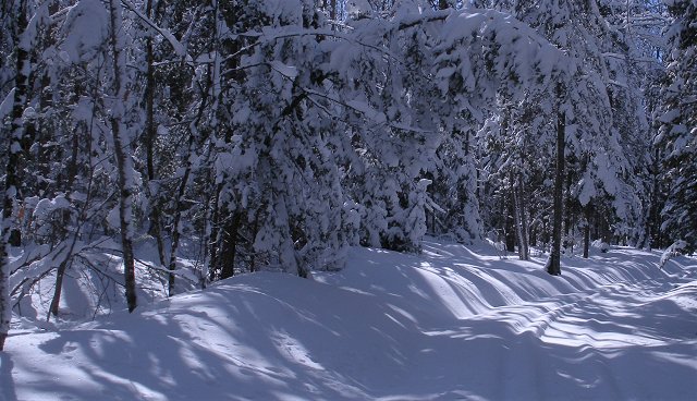 Drenched in snow, we shoed on this trail on Saturday, then on Sunday night we got another foot of snow.