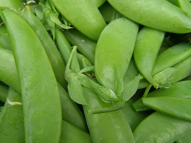 Sugar snaps from our garden. String them, turn them over a few times in hot sesame oil to turn them brilliant green, sprinkle with Slap Ya Mama and some crystallized ginger.