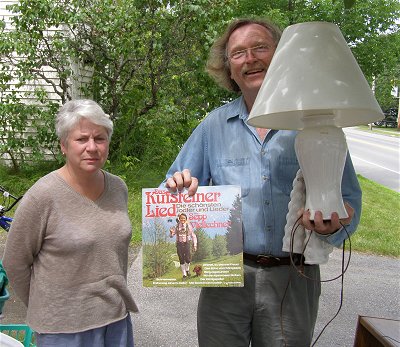 Yesterday was Barn Raisers annual meeting and community meal, a giant undertaking. Melissa, Deb and Pat made $300 for trails at the yard sale. Vicky and Larry found good stuff. Vicky is frowning because she thought Larry might actually buy the yodeling album.