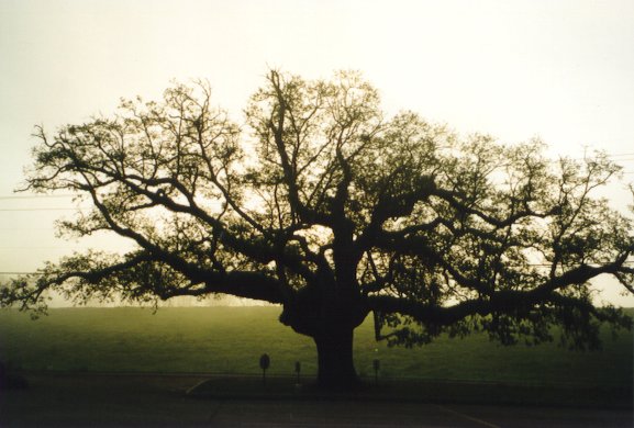 | My mother, Helen Altazan Bourg, passed away last week after about 3 years in a nursing home. Several generations of our huge family gathered for the funeral in the little church in Brusly, Louisiana. This oak grows by the levee there. It was a beautiful service and an amazing time of reunions and reconnections with family and friends. She would have liked it a lot. These lines are from a poem my cousin Kathy read during the service. | ||