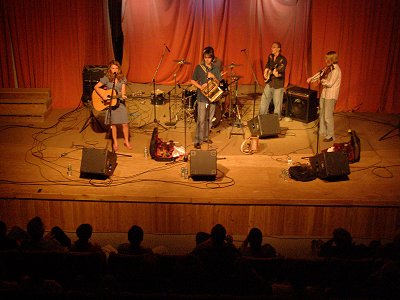 Our summer series started last night with Feufollet, a young Cajun band from Lafayette. Sweet children. In this picture you can see that the stage extension is on. It took away all the dancing room down front.