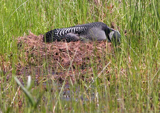 Sunday while kayaking up Carlton Stream, Melissa took these pictures of a loon on her nest and a couple of bullfrogs.