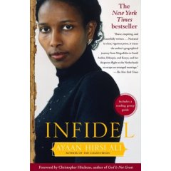 I finished the amazing memoir of Ayaan Hirsi Ali called Infidel. In one person's life, a journey from the horrific misogyny of Islamic life to the freedoms we take for granted.