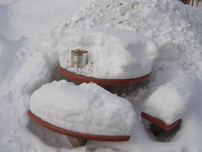 A TV commercial that runs in Maine says something like "You've been wanting to quit; now you have a reason." This is the smoking area in the commons near the post office. You know you are an addict when ...
