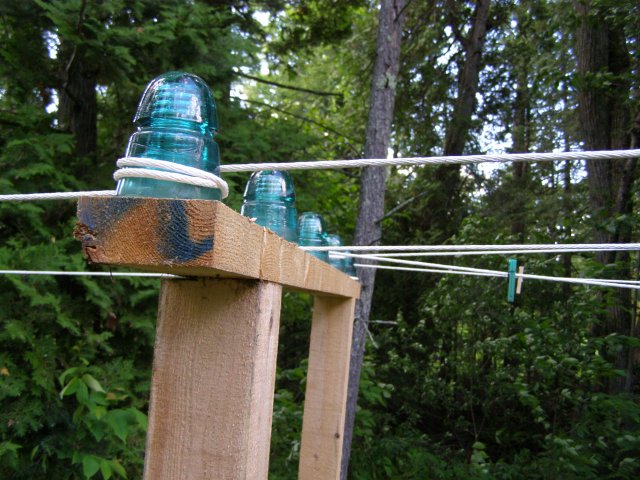 Early this spring I found seven blue insulators underpriced at a yard sale and I took it as a sign that I should build the Central Maine clothesline of my dreams. I added 3 from my insulator collection and made 5 lines. Things you use every day should be fun to look at.