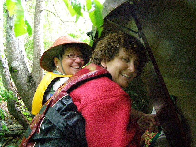 I don't know why they are grinning. We were all just about to get struck by lightning and die. In all our years of paddling on this lake, this was the first time we had to go ashore and flip the canoe over us. We're having weird weather with lots of thunderstorms. I've been fascinated by the animated radar screens I can get on my phone, but I know now that those screens are not useful in certain conditions.