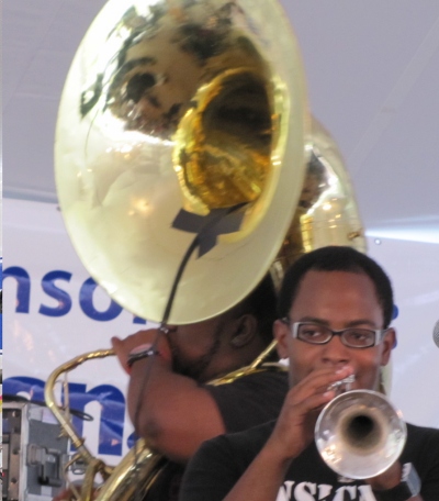 Finally I understand how to work this Americal Folk Festival in Bangor. Move directly from one music stage to another, ignoring the not-the-usual-music-festival crowd who seem to be looking for a midway or cotton candy or something. Skip the crappy crafts, just get to the music. And there was good music to be had. I had great seating for terrific sets by Hot Club of Cowtown, Eden Brent, and Stooges Brass Band, all three I've wanted to see for some time and two of whom I'd like to book for Unity Centre.