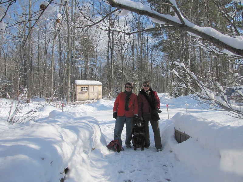 This is our quiet winter world. We went for a walk on the lake this morning with the dog; took a photo first wearing new scarves that my sister sent. The proper tying of the long scarf was something we had an epiphany about on Christmas when Martha was leaving and she tied her scarf. We both went "Oh, of course." In the picture below, Melissa's is tied in the proper way, warm and secure, while mine is hanging around waiting to fall in my coffee or something.