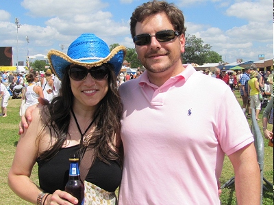 Friday, the first day of JazzFest, was mostly about shopping. It wasn't too crowded and we had good conversations with several crafters, including Peter Boutte from whom we bought a small painting. We visited Batik Man and got various fest apparel. Glad to see so many biking to Fest. We had some detective adventures (you find a phone on the ground; how do you find the owner?)with Jeanne and Luc, heard a few songs by Givers (like nothing else that ever came out of Lafayette), and then left early on a mission. We made a quick trip to Best Buy where friend Melanie bought an iPad, then home to iPad boot camp where we imported her yahoo contacts, set up her apple id and her email, showed her a couple of things and she was all set with it.
