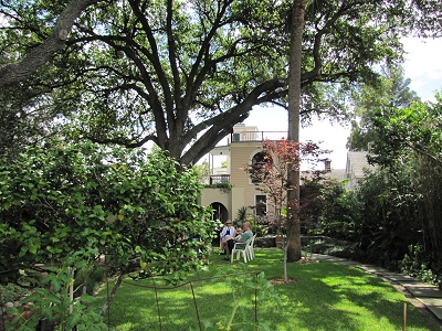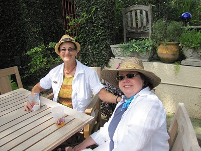 Saturday was party day. First Mary Jo and Dawn's annual party in their unique house and walled garden, the perfect place for many conversations. Then home to Colleen's in Metairie where Melissa and David grilled and niece Melanie learned to make pesto. Katie and Drew, who are somehow no longer in college but have movie jobs and a great kid, joined us. They do location stuff (Katie) and prop stuff (Drew) and they cleared up the No Tomb Parking mystery. The Tomb is a movie being shot in New Orleans.