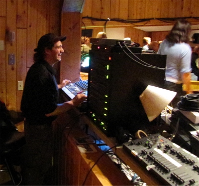 January is a good time to book a rocking show. There's not much else happening and if a snow storm doesn't wipe you out, people come out for some fun. The Alexis P Suter Band on Thursday night brought in a big enthusiatic crowd who were totally with her. Their live performance of "Rise" was thrilling. I took the shot above from my seat, pushed my way through dancers in the balcony to get the band shot and grabbed a picture of Andy LeBlanc, the sound guy, on the way by.