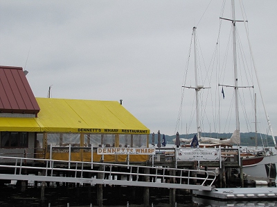 I like good food but fancy food is wasted on me. What I really like is scoring the best table,that is, the table with the best view, like this table at the Lobster Pound in Lincolnville or the table we had at Dennett's Wharf in Castine.