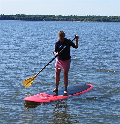 Yesterday was the most perfect blue sky day ever. I got in a bike ride around the lake and we had the usual suspects over for a cookout. Martha rented a paddle board and we all tried it out. She made it look easy. At the end of the day I took this picture of our neighbors returning from fishing.