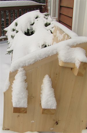 Finally the snow has come to change everything. When you change the light, you change everything, and Friday morning when the sun, that brilliant reset button that comes up every day, lit up the white world, it was a new season. Snow is my happy light. One of the reasons that this year's slide down to the solstice was darker than most is that we didn't get real snow until after christmas. Snow must be contended with. It rearranges your schedule, requires some outside time, magnifies sunlight, multiplies moonlight. Snow shuts down the old year and everything about it that needed shutting down. Another good snowfall last night. That's it. I'm getting out our snow shoes.