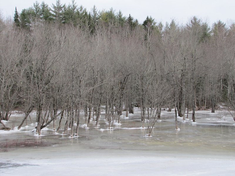 Slates brunch for Peter's birthday, and a stop in Benton on the way back to get these photos which don't really capture the beauty of the frozen bog. Maybe I like this scene because I know swamp and I know frozen, but not usually together. Stephen King idea: cold-resistant albino aligators that live in Maine's icy bogs and attack stranded motorists. Another stop on the same road to walk into the stream at SRLT's Moulton Mill property. Just as with Connor Mill on Sandy Stream, the remains of the mill are just above where ledge creates rapids. Reading an excellent book by Taylor Clark called Nerve: Poise Under Pressure, Serenity Under Stress, and the Brave New Science of Fear and Cool, about the neuroscience of fear: "...her prefrontal cortex taught itself to soothe the amygdala’s reaction to the crowd." I need to finish the book before I do the scary thing I'm about to do.