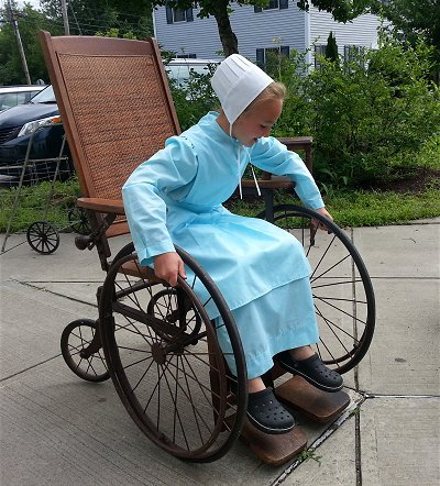 Melissa did a yard sale fundraiser for Triplet Park at the Community Center during Market Day. We got rid of a few things from our basement including the antique wheel chair we've had for 30 years. Like every kid who has seen it before, Keturah had to it for a ride. At the end of the sale she went home with a collection of Nancy Drew books. Melissa made good money at the yard sale and I'm thinking maybe my book group might use a bit of it to take on a project like this one.