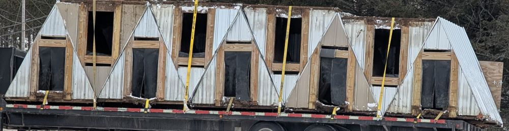 Maybe a tiny house condo? No, it's how the Amish ship a load of ice huts.