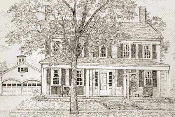 Some very nice friends in Unity had this sketch made for us. They own the business across the street from us, ie, the phone company. I think we've made the view out their front door a little nicer, or at least a lot yellower. Hey you PhotoShop whizzes, can we make the sketch yellow?
