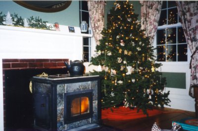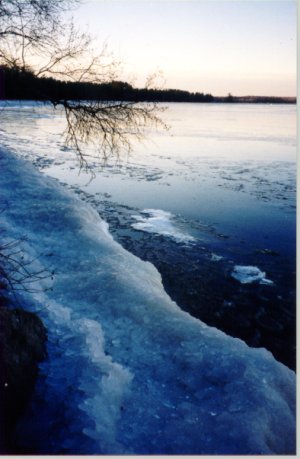 The lake's freezing process differs a bit each year. This year a fierce wind was blowing as the temperature plummeted, and as ice formed it was tossed up onto an ice levee at the shore. Two inches of ice is safe for one person to walk on, three inches for a group; eight inches will hold a light truck. I'm still working on my Christmas cards, which will now be called "winter cards." The pre-Christmas time was way too busy. Melissa's catering sideline kept her fixin & doin. Several small groups had their Christmas dinner parties at the Heron. They seemed to like having a private dining room and then exchanging gifts in the parlor. |