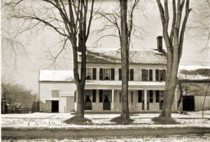 | Here's a photo of our house from that same era. And don't we wish the barn was still there. While we're wishing, let's undo Dutch Elm disease and bring back the elm lined street.
