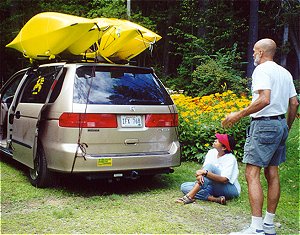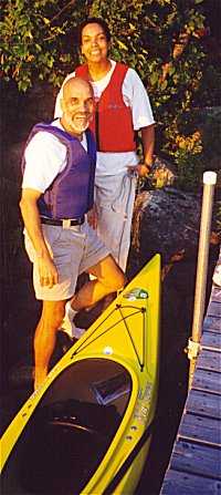 Veda noticed that everyone in Maine carries stuff on top their car. Musa noticed that there were no gears on kayaks that constantly need adjusting. So they went up to Old Town and came home with 4 yellow kayaks roped to the top of their van; paddles, vests, the whole nine yards. Keep an eye out for those in Bayou St. John. While they were here we traded in the tandem ("divorce material") Loon for a single seater Castine with a rudder kit. It has two storage compartments. Recently, we put wine in the front one, a basket of veggies in the rear one, and paddled down to the Nees camp for dinner. Vickie and Larry Nees are the parents of Alex who stayed with us last January. Old Town should cut us in for a commission. Mike and Sandy McCabe were up visiting Jeff and Sarah recently and they bought their second Loon. Go Sandy! We went out with them for soul satisfying comfort food at Freedom Cafe.