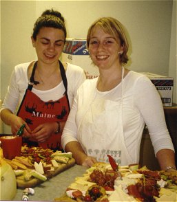 Melissa catered the refreshments and will be the "dinner" in its first dinner theater show in January. She couldn't do it without "the kids." Lauren and Holly can lay out a mean cheese board.