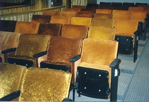 December 4th was the first night the lake skinned with ice; it broke up in a high wind the next day, but in the last week we have seldom been above the freezing mark, and often below zero at night, so she's good and frizzed now. With no snow on it, you can really hear the weird groans, moans, and jet trails that echo up and down the whole length of it as it adjusts to its icy top. | The seats have about 95 years of history in them, having been first in a theater in New York, then in Bowdoin College's theater before coming here.