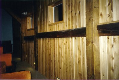 Unity has had a very newsy week and some major additions to its unusual infrastructure. Last Friday, Bert Clifford, now 80 years old, had the opening ceremonies of Unity Foundation, a 5 million dollar capitalized public foundation, and groundbreaking for a building (across from the post office) that will house it. Venture philanthropy comes to Unity, Maine. Last night was the opening of Bert's other project, the Unity Performing Arts Center, a 200 seat, slant floor theatre with art gallery space and a professional kitchen and dining/meeting space. Dinner theater. Concerts. Film festivals. Whatever. The theater was built from an old barn; I like the way the old rough beams keep its history.