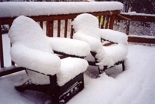 If October started in September this year, it certainly appears that late November started in mid-October. On the weekend that the time changed, we got about 6 inches of snow. Heavy enough to break a big bough off the apple tree at the lake that had just produced its first bumper crop. As you can see we hadn't taken the chairs off the deck yet. The day before it snowed we were raking leaves. Discombobulating it is. I'm not sure what time or what season it is. And on the same weekend, hunting season started. Trees can unexpectedly have dead deer hanging in them. Then there is wearing orange...