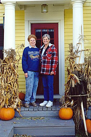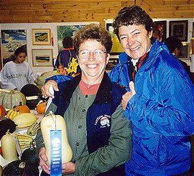 October has been so busy this year that we had to start it in September to get everything in. It started with Commonground Fair and a full house of the Commonground Regulars: Jennifer, Steve and Camden Dionne; Nancy and Steve from Portmanteau; David and Lou who do the birds and bees near Boston; and Carol, Ken, and Judy from New Hampshire. Dennis and Carol of Mother's Mustard and the rest of the Portmanteau staff came down from the Annex (the Russell's house), Mr. Oliver and Beatrice from the blueberry fields in Salem: about a thousand sittings for breakfast each day. Jinx came into this whirlwind after spending a week at a Buddhist retreat in Vermont and brought good squash karma. Melissa's brother Peter had left her a box of winter squash from his garden at our kitchen door. Melissa picked a butternut from the box, entered it at the fair and won a blue ribbon.