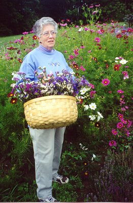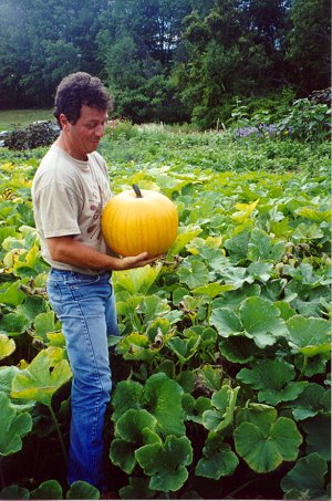 Gardens are finishing their work, the tomatoes are finally red, and pumpkins are ready. In Melissa's family the gardening gene is dominant. Her brother Peter has a big garden in the fields at Shirley's house; he waters it by pumping right from the Kennebec. Melissa's mom Shirley always dresses to match the flowers she's gathering. Shirley and her gardening club cohorts are going to meet with people in Unity next month to help get a gardening club started here. That, like everything else, has to wait until after Commonground, the big organic growers fair that takes over Unity next weekend. Our pal Jinx Vidrine will be up visiting during that time. She'll get to see us in total mobilization.