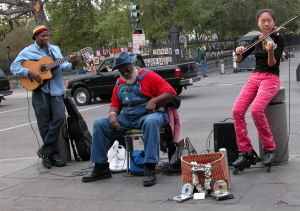 There was even a musical moment in our trip. On Sunday, we wandered down to the quarter with David, Colleen and Jeanne, and while having beignets and coffee, heard an interesting trio with a cool jazz violin called Mother Tongue. Their usual vocalist is a protege of Bernice Reagan Johnson, but Pops did a good job filling in.