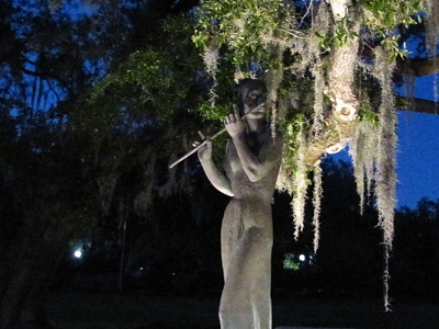 At intermission we walked through the gardens surrounding the building, all wonderfully restored since the storm. The most impressive plant is an ancient sprawling oak. My sister Colleen pointed out how their lateral branching close to the ground helps them survive hurricanes. Saw old friends Veda and Musa there. We hope to visit their gardens while we are here. Coming down a week early before the JazzFest crowds arrive has let us do lots of stuff we don't usually get to do. |