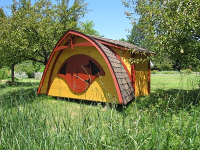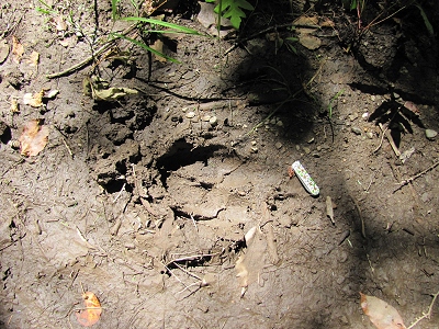 Walked a trail-to-be with a group today. Lots of picking our way through the puckerbrush. Saw a lot of footprints, from the tiny print of a fawn to this big moose print. I put a pen knife next to it for scale. Melissa was working in Triplet Park today and showed me their new hobbit tool shed. She and Pat were having a discussion about the round door which doesn't open (a bigger door opens in the back). Pat pointed out that for a 3 year old, a door that doesn't open messes with their fantasy life. Melissa pointed out that kids would not actually go in there because it's a tool shed.