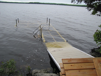 Last weekend and into this week we had a huge amount of rainfall and rivers and lakes rose quite a bit, in our case higher than our dock. No problem. I picked up the lightweight cedar decking and stacked it on shore so it wouldn't float away. When the water level goes down, I'll put it back on. We should be drinking wine on the dock again in a few days.