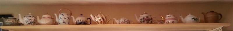Can you spot the newest addition to the teapot shelf? Hint: it's very festive.