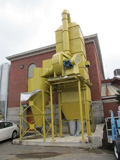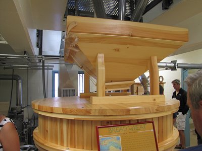 | Yesterday we went to Skowhegan to get a look at the new Maine Grains grist mill and check on how my $25 kickstarter money had worked. The mill works spans all three floors of the old jail building with hoses and chutes and bins. Amber and company have softend up the building with accent walls in warm colors and art. A lot of the equipment inside is beautiful wooden things. I missed the tour so I have no idea how it all works. Steve Dionne did the renovation of the building and I'll get him to explain it all to me when he and Jennifer stay with us over Commonground Fair. |