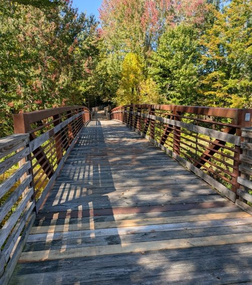 The repairs to the foot bridge are complete, paid for by the college, many boards replaced and a triple sill replaced. The bridge is such a handsome thing and will connect us to whatever the college campus will be in its next life.