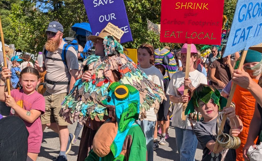 The Gawlers plus Bennett. Jean & Este. The Common Ground family from NH, AK, WA gathering in the evenings. The veggie parade. Jim Hightower's Texas jokes. Shape note singing. Leeks for Pete Curra. 35 degree mornings. Fancy grilled cheese sandwiches. Throngs of young people. Joyful contra dancing. Sunsets on the dock.